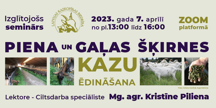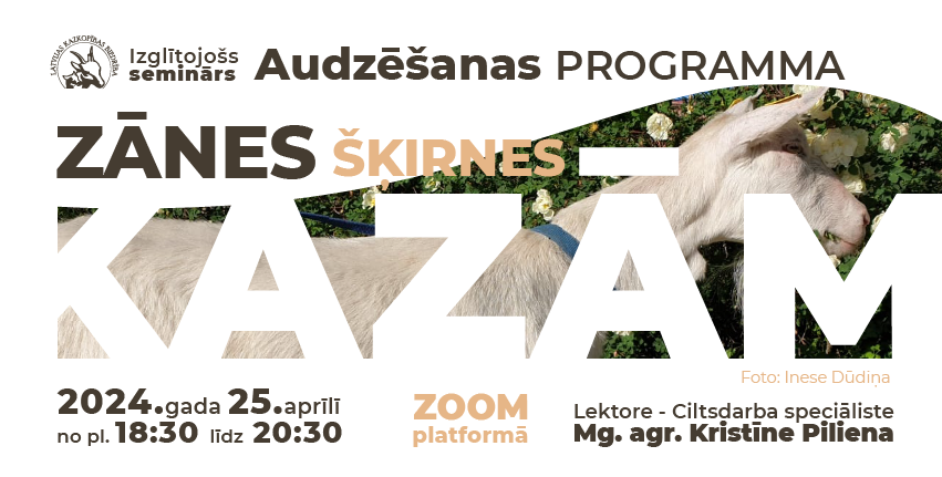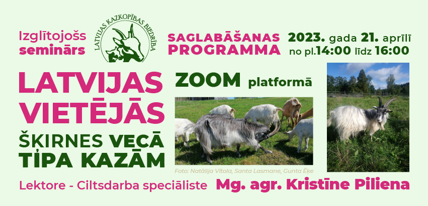 Pasākuma programma lidz 11:00 Reģistrešanās un brokastu kafija11:00 Pasakuma atklašanaar Latvijas kazkopibas biedribas vaditaju Kristini Pilienuun ZS “Dzeņi” ipašnieci Ingu